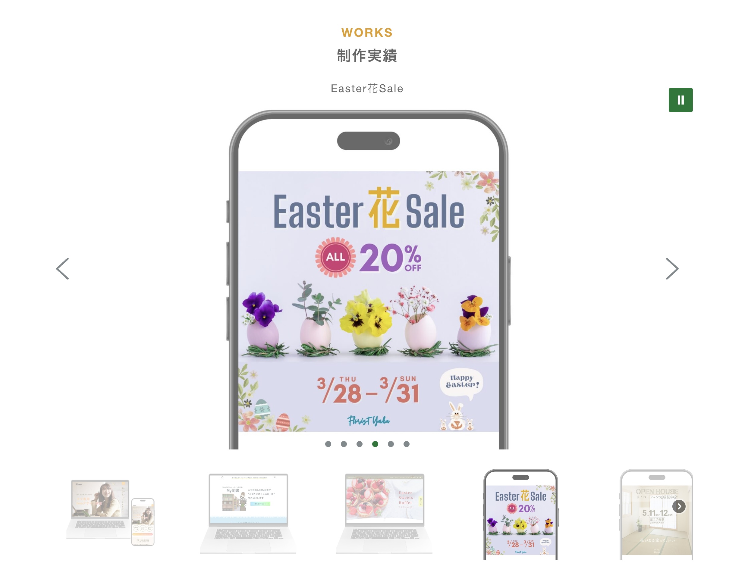 複数の作品をカルーセルで紹介することで、より多くのお客様の目に留まるようにしました。